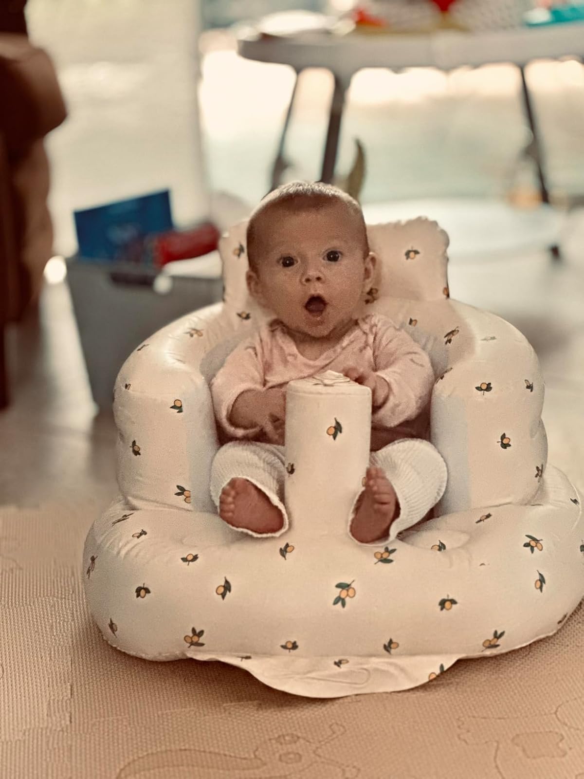 "I saw this all over social media and finally decided to try it — best decision ever! It’s lightweight, inflates in seconds, and is surprisingly sturdy. I keep it in the car so my baby always has a comfy and safe place to sit wherever we go."